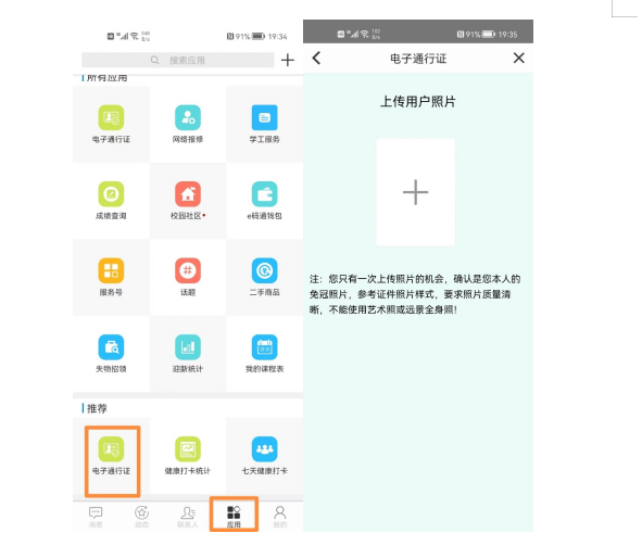 进入【电子通行证】应用,按照提示上传一张免冠照片(可以是清晰的自拍照),上传成功后即完成电子通行证的开通。