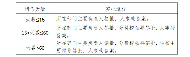 (三)请假人需填写《beat365在线唯一官网教职工请假审批表》,并按要求提供证明材料,按照准假权限批准后方可生效。未经批准的,擅自离岗或经批准但假满未归的,且又未及时办理续假者,其超出天数按旷工处理。