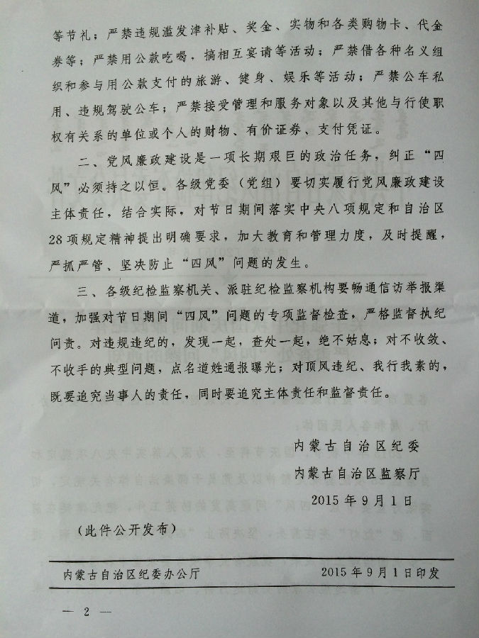 附件:自治区纪委《关于强化中秋国庆期间廉政纪律严肃查处“四风”问题的通知》(内纪发〔2015〕6号)