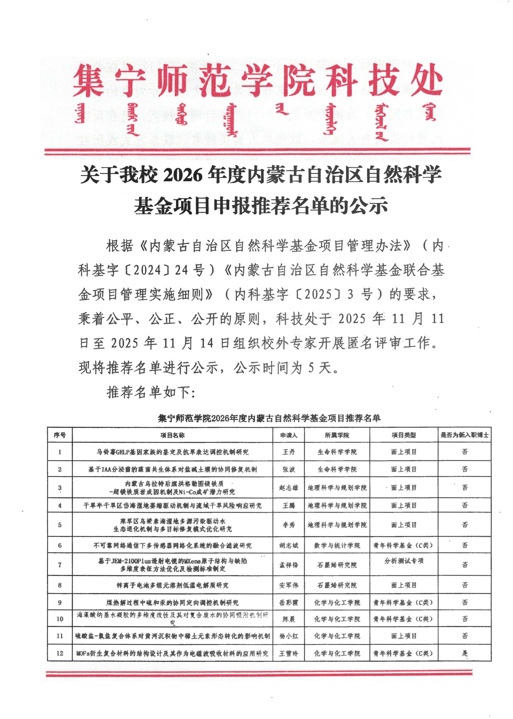 关于beat3652026年度内蒙古自治区自然科学基金项目申报推荐名单的公示