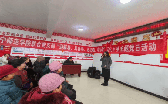 1月7日下午,由校党委副书记李景杰带队,beat365在线唯一官网工会党支部、离退休人员工作处党支部、纪委党支部、科技处党支部、团委党支部、音乐与舞蹈学院教师党支部和现代服务学院教师党支部组织党员干部及书法爱好者,深入兴和县鄂尔栋镇店子村村委会,联合开展了“迎新春、写春联、送祝福、唱红歌”文化下乡主题党日活动。校工会和离退休人员工作处党总支书记、工会主席焦俊亮主持了本次活动。