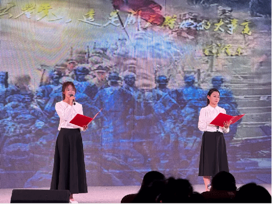分享会上,高婧旖、孟鑫以扎实功底演绎《永不消逝的声音》,用细腻而富有张力的语言,讲述了隐蔽战线工作者以声音为武器传递情报、为革命事业英勇奉献的事迹;张瑞霞、张世玉深情朗诵的《红铁》,以极具感染力的声音娓娓道来那段波澜壮阔的革命历史,铿锵有力的语调,生动展现了革命先辈钢铁般的坚韧意志与对党和人民的无限忠诚,带领现场观众深刻感受革命精神的伟大力量。