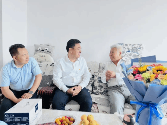 在陈老师家中,一行人围坐在陈老师身边,与他亲切交谈,悉心询问他的身体状况和日常生活情况,认真倾听他讲述过去的工作经历和奋斗故事。大家对陈老师多年来为党的教育事业作出的贡献表示崇高敬意和衷心感谢,叮嘱他要保重身体,保持积极乐观的心态。