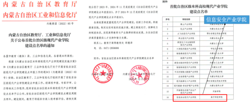 1个自治区级现代产业学院:自治区信息安全现代产业学院,作为学院产教融合的核心依托平台,推动学院与企业在专业建设、课程设置、科学研究等方面深度融合。