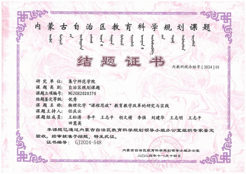 五年来,化学与化工学院教师主持国家级项目或课题1项,自治区级27项,市级8项,校级55项;指导学生主持大学生创新创业训练项目国家级2项、自治区级13项、校级25项。
