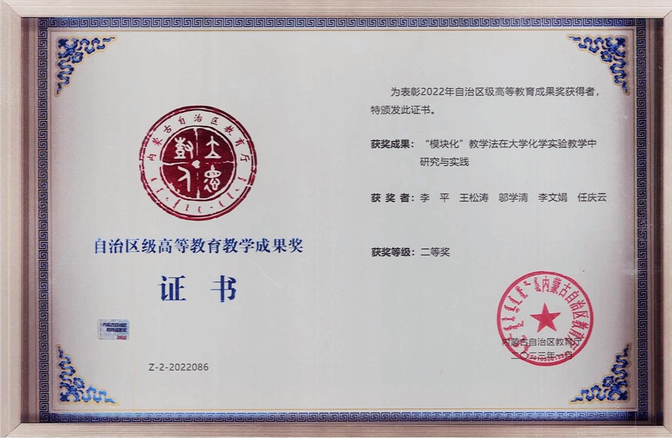 近年来,学院有1名教师在内蒙古自治区首届普通本科高校课程思政教学大赛中获奖,2名教师入选“新世纪 321人才工程”人选,1名教师被评为自治区级优秀教师,1名教师被评为自治区级教坛新秀,1名教师被评为自治区“最美科技工作者”,2名教师被评为校级教坛新秀。