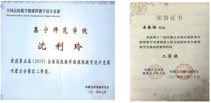 学院通过构建教学改革长效机制,显著促进了教师队伍教学胜任力的提升。学院教师在自治区级以上教学比赛获奖5项,其中高校数学微课程教学设计竞赛华北赛区二等奖4项、第十三届内蒙古自治区高校青年教师教学竞赛二等奖1项;获校青年教师教学技能大赛一等奖1项、二等奖2项、三等奖2项。