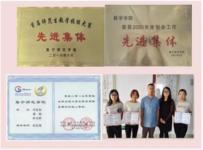 通过创新培养模式,学院考研、考编等高质量就业率一直保持在领先地位,荣获校“创业工作先进集体”,多次获得“职场大赛”“创业大赛”一等奖。各专业依托自治区一流专业建设点,立足创新,注重实践,开展了数学建模实践创新活动、组建数学建模教学团队、建立科技创新协会、建设数学模型课程思政示范课、组织参加数学建模竞赛等,在培养创新人才和全面提高学生综合素质方面积累了经验,形成了专业特色与优势。学院获“首届师范生教学技能大赛先进集体”称号。“大学数学与数学建模教学团队”于2014年获批自治区级教学团队。学生参加全国大学生数学建模竞赛获得本科组全国二等奖3项、赛区一等奖12项、赛区二等奖29项、赛区三等奖44项。此外,第二课堂作为第一课堂的重要补充,是学生拓展素质、记录成长的重要平台,我院在此领域成效显著,长期位居学校前列。目前学院已创建部落33个,学生总数为583名,部落活动丰富多样,涵盖思想政治与道德素养类、铸牢中华民族共同体意识类等,共计已发布活动1048项。