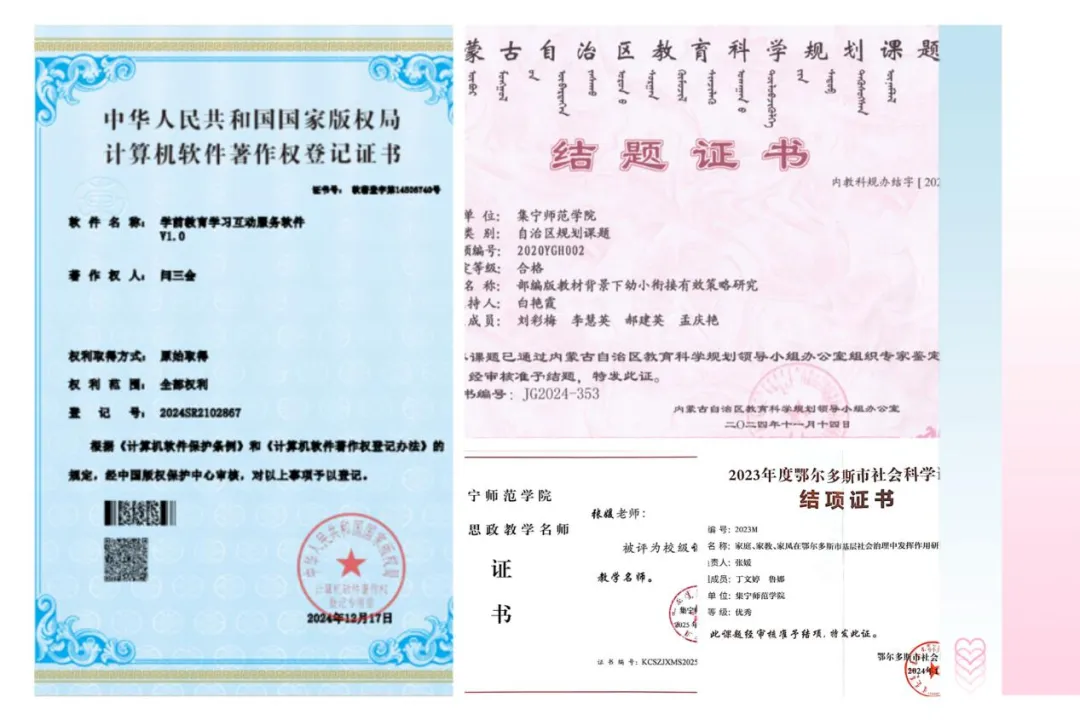 学院坚持“对接基础教育,服务地方建设”的理念,积极构建“共筑组织、共建队伍、共享资源”交互基站模式,整合多方资源、打通信息壁垒、拓宽辐射范围,为提升社会服务质量加速增效。学院与内蒙古立心家庭教育研究院合作共建内蒙古家庭教育研究基地,合力打造高水平家庭教育研究平台和人才培养基地。学院现有10余名教师先后被内蒙古妇联和内蒙古教育厅聘为“内蒙古幸福星家庭教育讲师团”讲师、“内蒙古母亲文化和家庭教育宣讲团”讲师、“内蒙古自治区家庭教育智库成员”、“乌兰察布市家庭教育讲师团”成员;在第32个国际家庭日到来之际,学院组建家庭教育公益服务工作队伍,打造家庭教育微课堂,与市妇女联合会在乌兰察布市妇女联合会公众号共同推出“涵养好家风 共筑家国梦”双视频展播活动10期。
