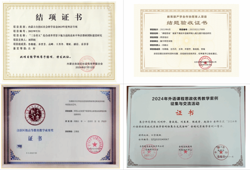 学院紧跟外语专业发展前沿,以教育数字化转型、课程思政、知识图谱等新课题为抓手,坚持以研促教、以研促改,科研与教研成果显著。近三年,获批各级教学改革项目75项,科研项目40项;获批校级一流课程7门、课程思政示范课9门;获得省部级科研成果奖2项;获自治区教学成果奖三等奖2项,校级教学成果奖12项。出版专著、教材150余部;在国内外重点学术期刊发表论文170余篇。
