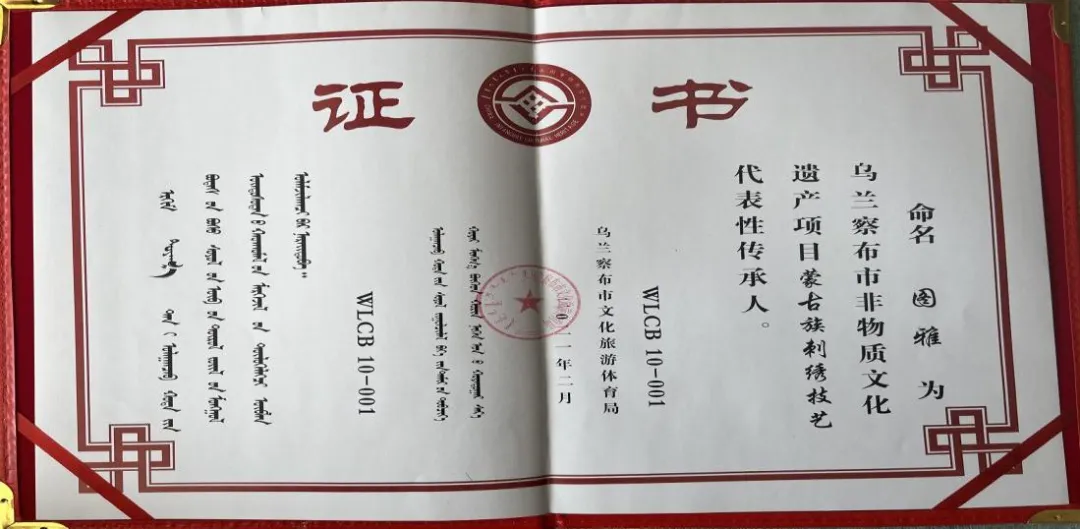 课程开设以来,深耕非遗教育教学领域,通过“师徒制”教学、实践工作坊等形式,实现技艺活态传承,迄今为止已有1000多名学生学习蒙古族刺绣,掌握基本技能。学院藏有500余张蒙古族传统刺绣图案、近600件蒙古族传统刺绣手工制品、近300件传统刺绣现代作品。