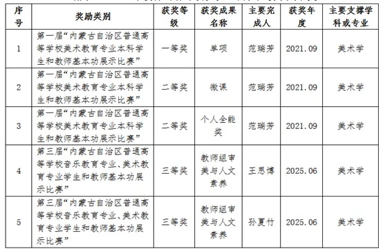 学院坚持以人才培养为中心,深入实施教师科研促进计划,通过科研反哺教学,实现教学科研协同发展。在科研项目申报、学术成果产出、艺术创作实践等方面取得显著成效,为提升人才培养质量提供了有力支撑。近5年来教师的主要成果包括:主持国家级课题1项,省部级课题20余项,市校级项目13项;发表核心期刊论文10篇,省部级论文50余篇;出版专著教材20余部。在艺术创作方面,教师作品入选国家级美展9次,获奖2次,省部级美展入选及获奖30余次;4名教师在内蒙古自治区首届和第三届普通高等学校美术教育专业本科学生和教师基本功展示比赛中分获一、二、三等多个奖项;1名教师荣获内蒙古自治区第五届社会哲学科学政府奖。这些成果充分展现了学院教师队伍科研能力的整体提升,为学院高质量发展奠定了坚实基础。