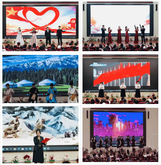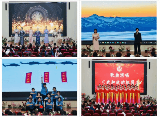 蒙古学学院的合唱《与明天一起出发》以独特魅力传递奋进力量,舞蹈《万丽》柔美灵动、《puerto》热情奔放,尽显民族文化风采。教育科学学院退伍士兵的朗诵《总有一天》赤诚满怀,情景舞蹈《觉醒年代》重现革命先辈热血岁月。历史文化学院的独唱《唱支山歌给党听》与大合唱《我和我的祖国》将现场气氛推向高潮。现代服务学院的朗诵《我的南方和北方》、《永不消逝的声音》、《这样的攀登者》,以细腻情感勾勒祖国文化的厚重与广袤。