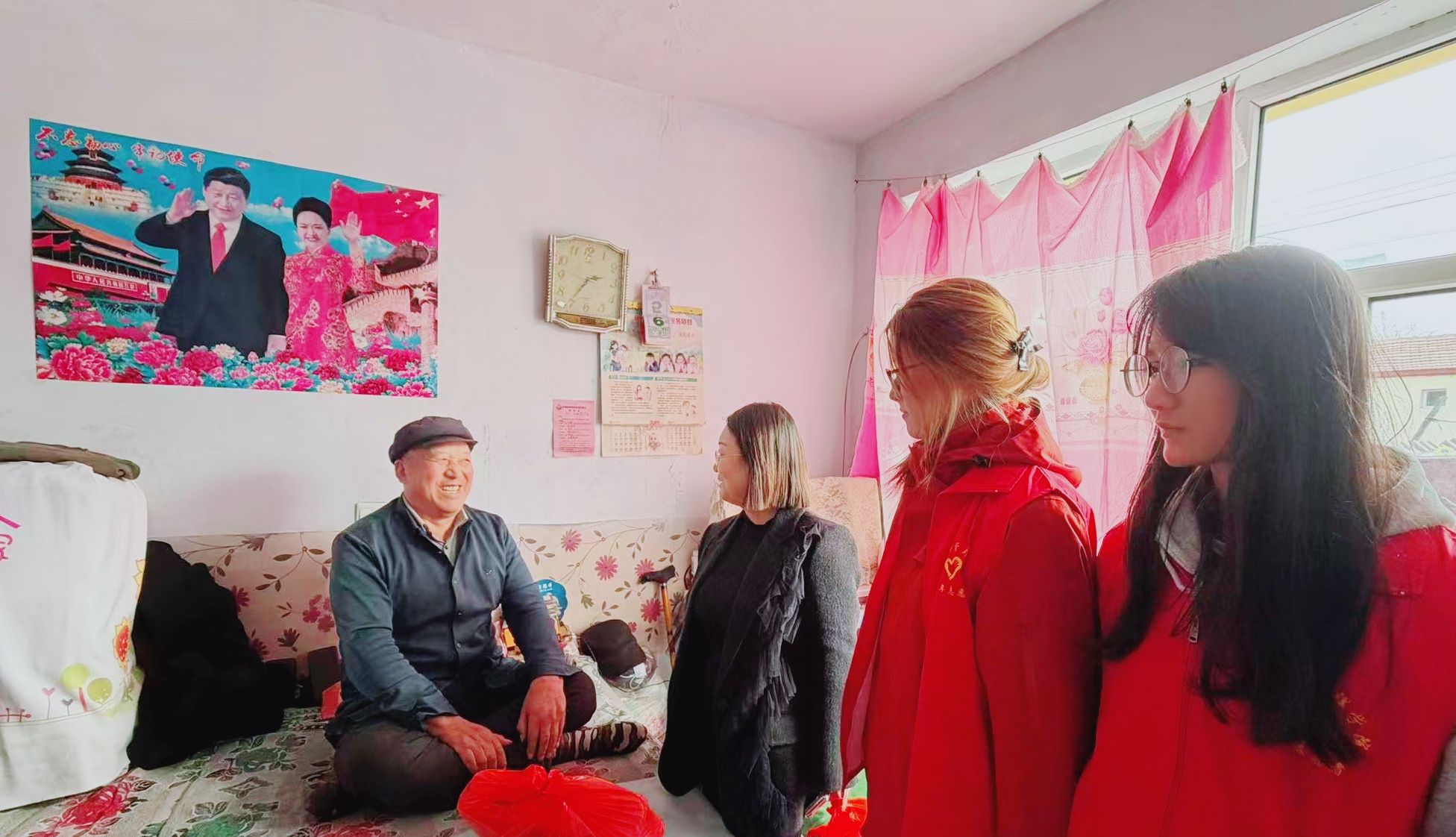 beat365师生代表与化德县政府副县长苗雯娟、村“两委”干部一同开展走访慰问,为困难群众送上慰问品,详细询问其身体状况、生活需求及实际困难,鼓励他们坚定信心,依靠政策支持与自身努力改善生活。