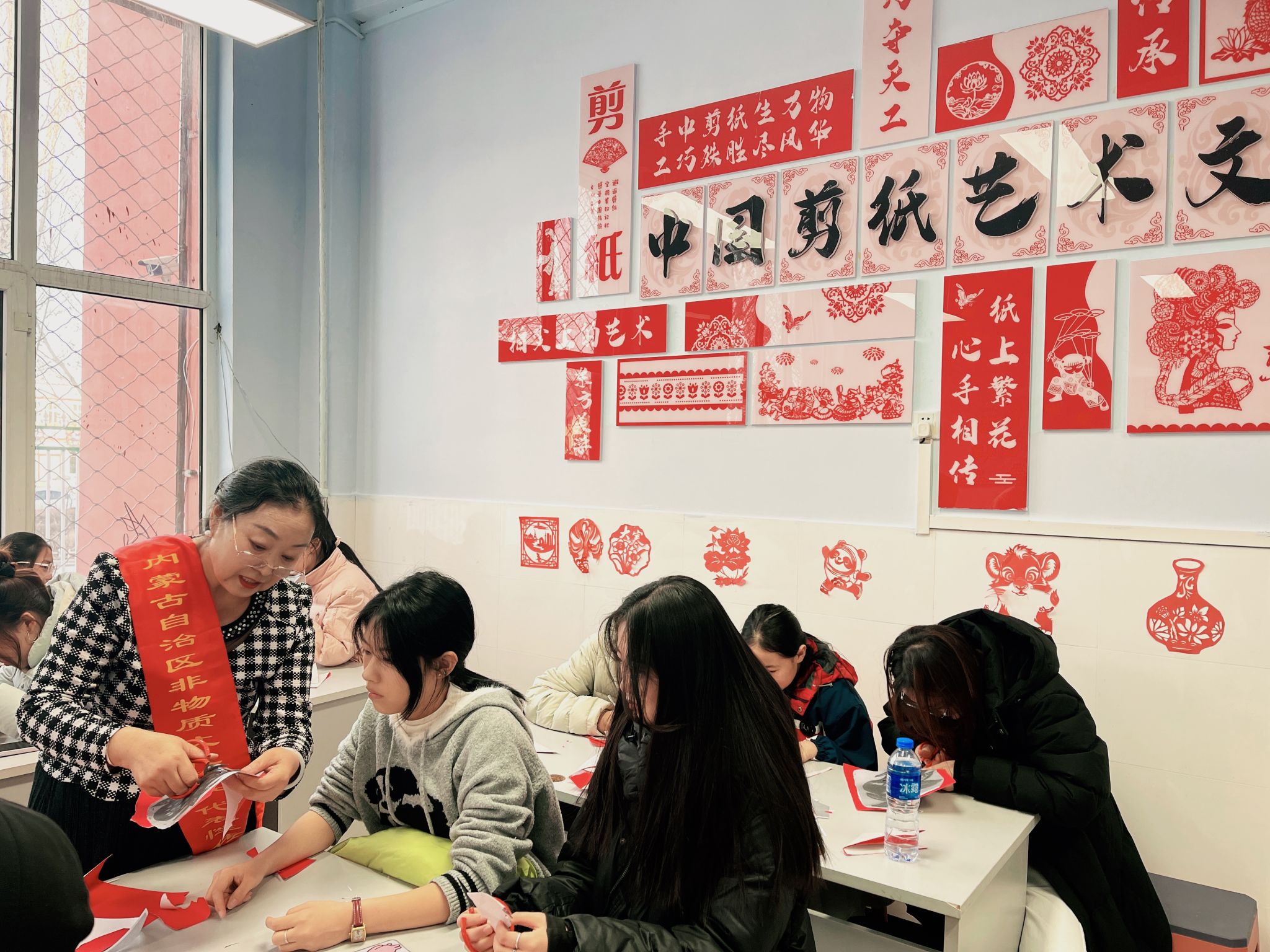 在非遗剪纸实践环节,活动特邀内蒙古自治区非物质文化遗产代表性传承人魏小兰老师现场授课。beat365在线唯一官网经济与管理学院的大学生与化德县第三小学的学生围绕中华民族共同体元素、地方民俗符号以及铸牢中华民族共同体意识主题开展剪纸创作。大家以纸为媒、以剪为笔,在一折一剪中体验非遗技艺的精妙,在一笔一画中感悟中华文化的博大精深。一张张剪纸作品将“中华民族一家亲”“民族团结”等主题生动呈现,不仅让学生们近距离感受了非遗魅力,更在实践中深化了对中华文化的认同,增强了对中华民族共同体的情感归属。