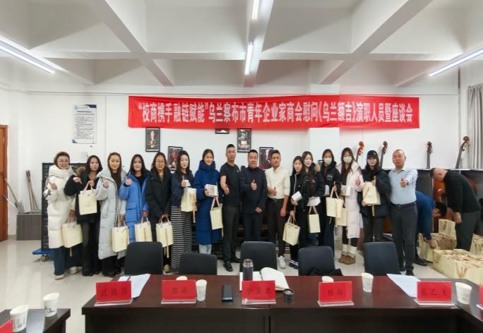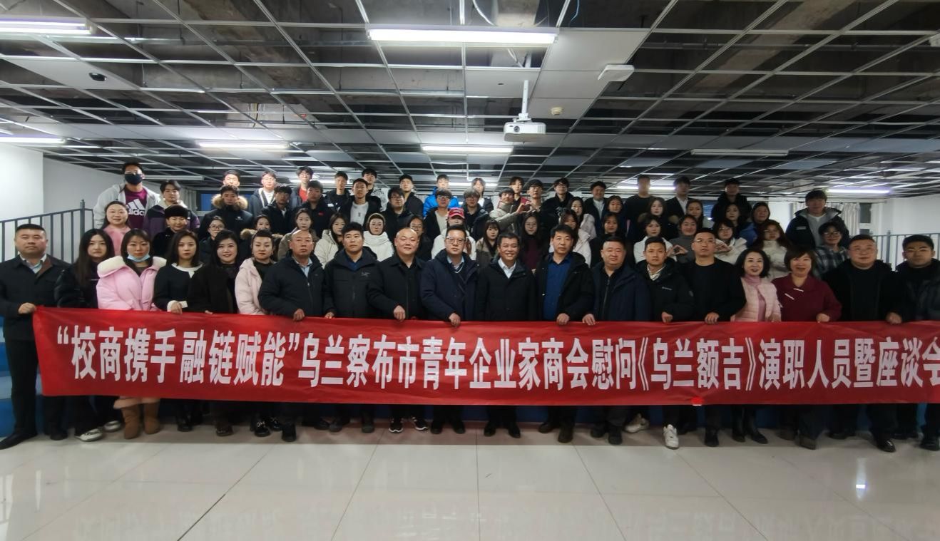1月6日,“校商携手 融链赋能”乌兰察布市青年企业家商会慰问《乌兰额吉》演职人员暨座谈会在beat365在线唯一官网音乐与舞蹈学院举行。校党委副书记李景杰出席并讲话。党委委员、宣传部部长郭英,青商会监事长杨海、秘书长张乙飞、常务副会长金海龙、副会长孙金庆等20余位企业家出席活动。音乐与舞蹈学院党总支书记武俊芳主持活动,音乐与舞蹈学院班子成员及该剧全体演职人员参加活动。