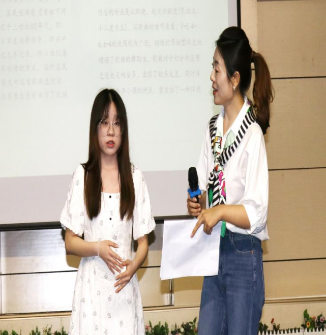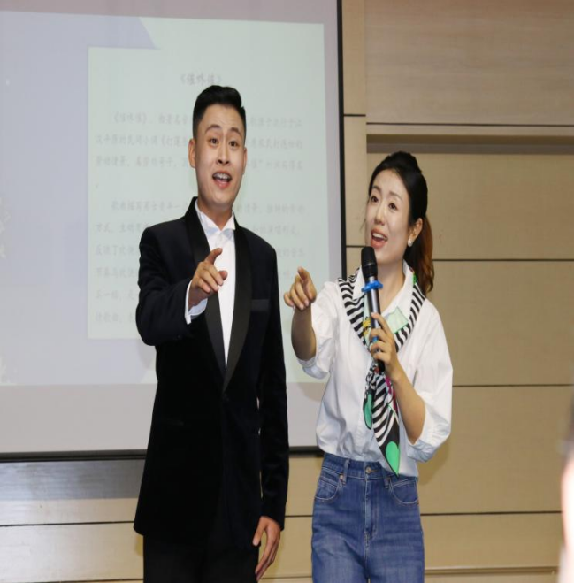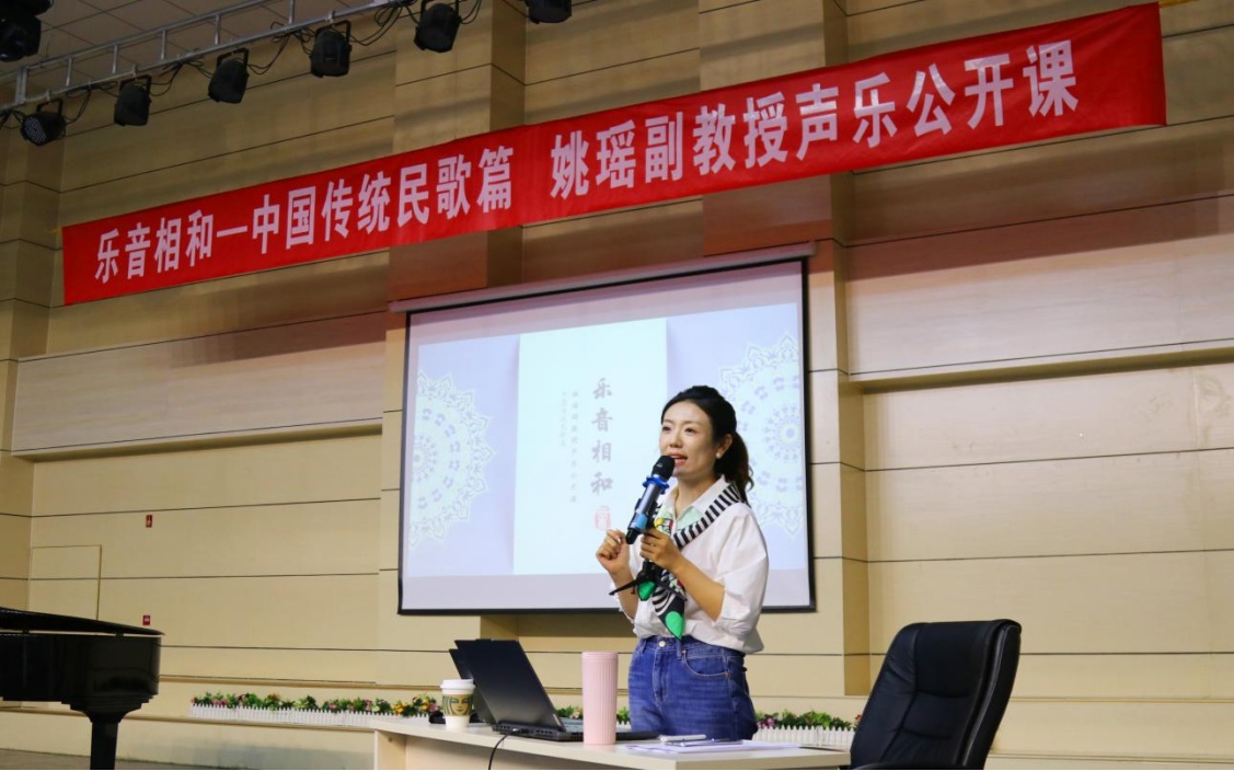 活动邀请师从我国著名声乐教育家金铁霖先生,曾获得第七届内蒙古自治区室内乐大赛民族声乐组一等奖,现就职于内蒙古艺术学院姚瑶副教授为师生授课。公开课上,姚瑶老师结合自身教学,讲述了中国民族声乐表演理论的形成发展。并在课堂教学示范环节,指导学生演唱了《丢戒指》《放风筝》《催咚催》等东北、河北、湖北各地民歌,展示了声乐演唱技术的独到见解。