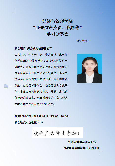 经济与管理学院“我是共产党员,我帮你”学习分享会——许海云(003期)