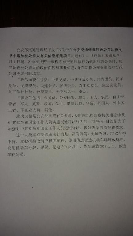 在公安交通管理行政处罚法律文书中增加被处罚人有关信息采集项目的通知