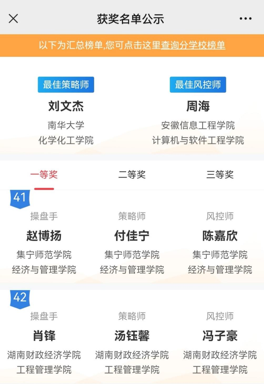 本次大赛吸引了来自全国2570所高校超71万名大学生参赛,全程分为校赛、省赛和国赛三个阶段,每个阶段的比赛都历时一个月,全国共有86288支团队晋级省赛,共有17275支团队冲进国赛。参赛选手们经历了紧张而刺激的策略制定、风险管理、投资组合等环节,在实时市场模拟交易中与竞争对手斗智斗勇,同时将专业知识和实践操作融会贯通,展现了出色的金融投资实力,最终有3000支优秀团队脱颖而出,获得国赛大奖。