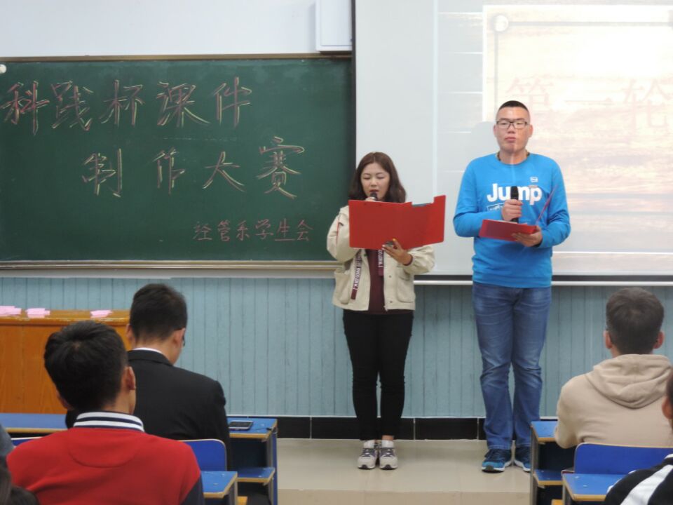 提高同学们的计算机技能水平,我系于2017年9月27日晚在主教楼318举办了第四届“科践杯”课件大赛。担任本次比赛的评委有各系主席团成员及编辑部部长。