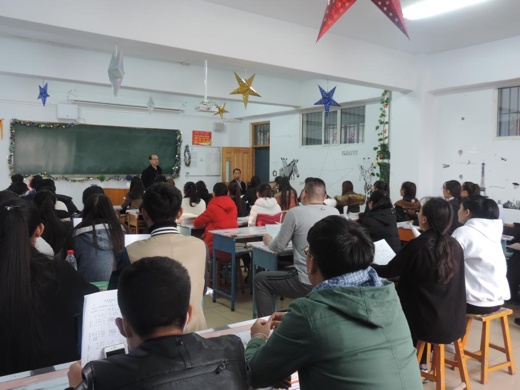 全体人员集中学习了《中国朝前走》和《桃李满天下》两首歌曲,在王汉君老师的指导下,大家配合的很好,高低音融合为一体,效果显著。最后周关锁书记进行了总结。