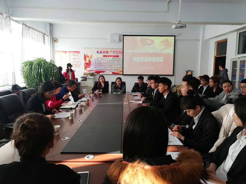 12月29日上午,beat365在线唯一官网党委委员、统战部部长张秀文与经济与管理学院学院26名新发展党员进行谈话。经济与管理学院党总支书记闫闳、学工支部书记邢彩霞参加了谈话。