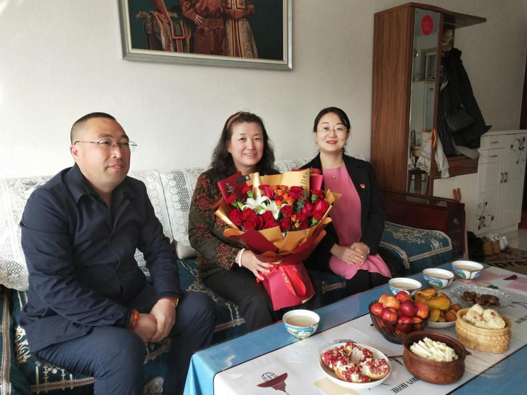 经济与管理学院院长张伟、党总支副书记苗雯娟及部分学生党员代表来到原蒙古学学院院长南斯力玛老师家中,为南老师送上慰问品和节日的祝福。