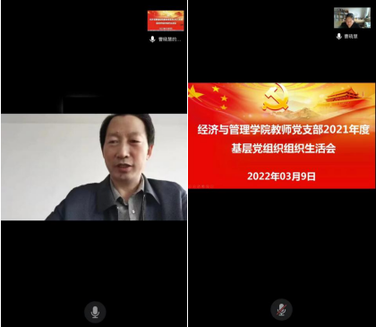 2022年3月9日上午,经济与管理学院教师党支部组织生活会通过线上方式召开,beat365党委副书记、校长李树林参加本次会议并进行指导,经济与管理学院全体班子成员以普通党员身份参加了本次会议。