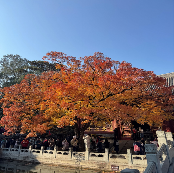 学生们重点调研其如何破解“红叶节”带来的季节性瓶颈,以及全时旅游产品的开发策略。通过访谈公园管理者与商户,他们了解到香山正通过举办四季花展、开发文创商品、升级智慧导览等方式,努力实现从“一季热”到“四季旺”的转型。同学们运用《旅游市场营销》知识进行分析,提出“应加强品牌年轻化叙事,通过社交媒体持续输出香山的四季美景与文化故事,同时针对细分市场开发自然教育、康养休闲等产品,延长游客停留时间,提升综合消费。” 这一站锻炼了学生们对市场动态的敏锐洞察力和产品创新的策划能力。