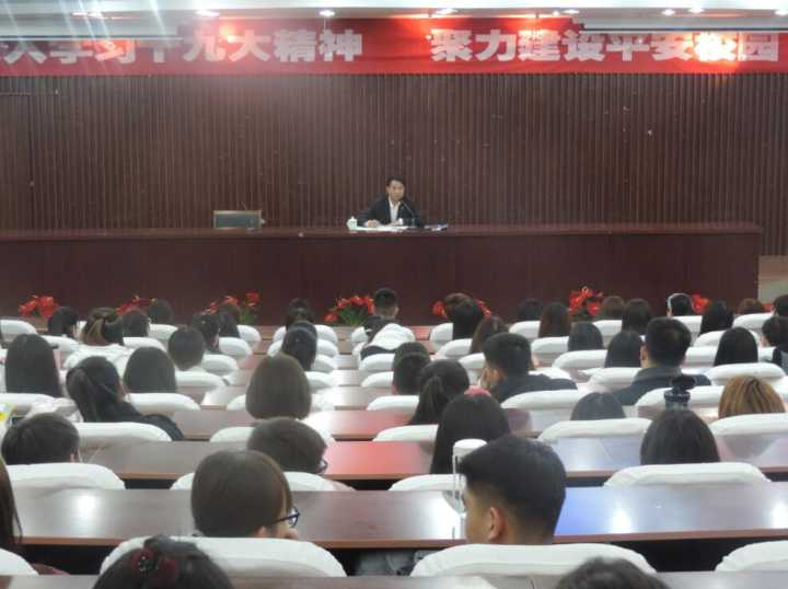 为深入落实学生安全工作,提高我院学生的安全意识,我院于3月22日在图书馆报告厅举办了以“深入学习十九大,聚力建设平安校园”为主题的安全教育讲座。本次讲座由党总支副书记张伟主持召开,邀请保卫处谢军处长主讲,15、16级本科生和17级全体学生参加。