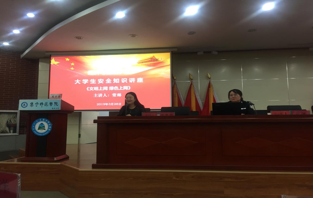 为了加强校园网络安全教育,营造安全、健康、文明、和谐的网络环境,经济与管理学院于2019年3月28日下午4点,在泉山校区图书馆报告厅成功举办了大学生网络安全知识讲座,讲座由乌兰察布市公安局集宁区分局网安大队民警常琳主讲,乌兰察布市公安局集宁区分局网安大队副大队长刘洋及民警陈晨,我院党总支副书记苗雯娟、学工办老师邢彩霞等教师参加了讲座。