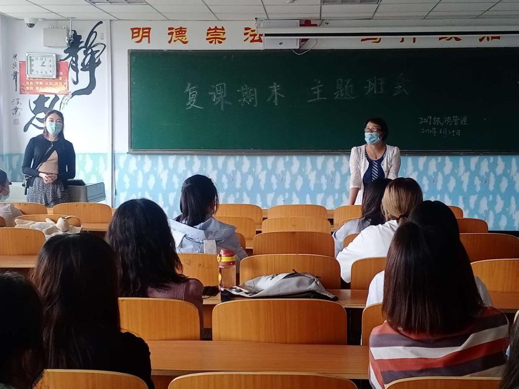 此次班会的主题是“复课期末”。班会中,杨老师与同学们进行了充分的沟通和交流,肯定了同学们在疫情期间都有不错的学习自觉性,希望同学们开始线下课程后更不能懈怠,在复课阶段更要好好努力,以优异的成绩完成本学期的学业。