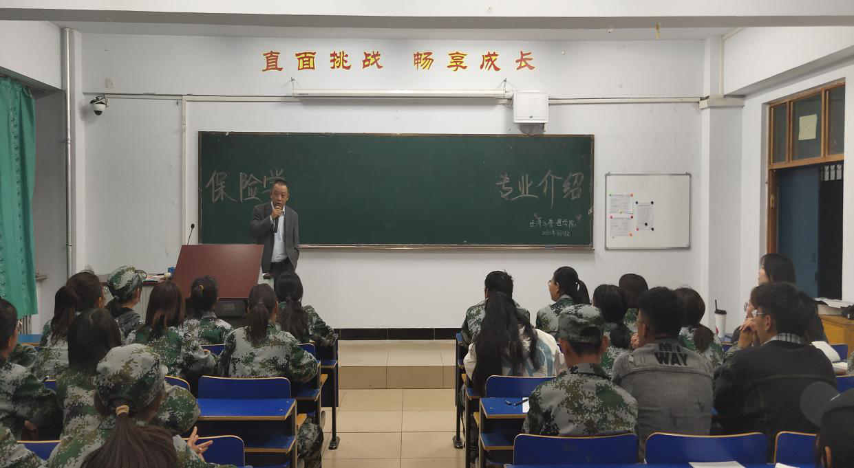 9月29日晚19:30,在主教楼218教室经济学教研室主任周笑非教授为2020级保险学专业新生讲解《保险学专业介绍》。