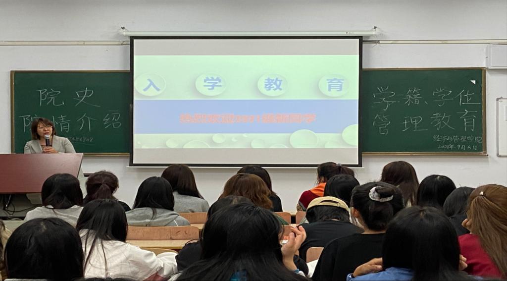 为了让2021级新生更快的融入校园、更好的了解学院,提升新生思想政治素质,树立学习目标、科学规划学习生活,提高我院的人才培养水平,经济与管理学院9月6日-10月5日开展了2021级新生入学教育讲座。2021级13个班级的553名学生参加了本次新生入学教育。