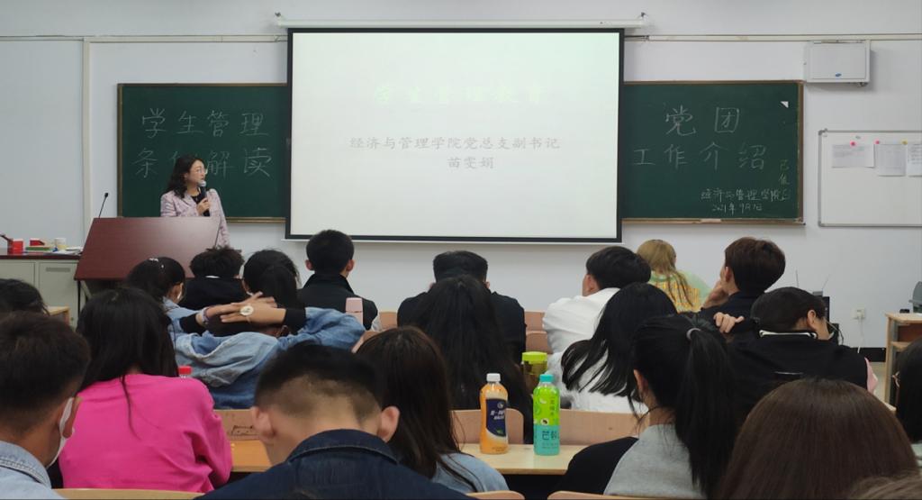 经济与管理学院新生入学教育邀请多位老师和同学举办专题讲座,涵盖院史院情、学籍管理、学生管理条例、入党流程、共青团建设等多方面内容,取得了圆满成功。充实丰富的入学教育也使2021级新生能够更好的了解大学,迈出规划大学生活的坚实一步。