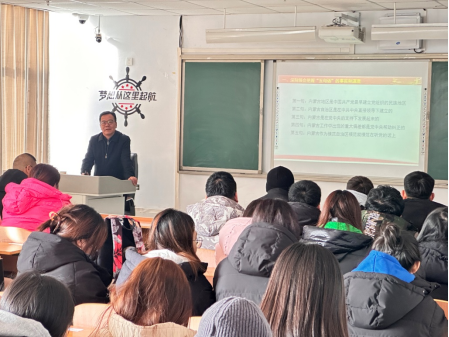 赵永军以铸牢中华民族共同体意识为主线,紧紧围绕理解和把握“五句话”的事实和道理,从四个方面进行了深入浅出的阐释,希望广大教师和学生认真把握党中央对内蒙古的战略定位,坚定政治立场,明晰奋斗方向,清正廉洁做人,勤奋努力学习,掌握过硬本领,以激扬青春之志之行,奋力书写中国式现代化内蒙古新篇章。