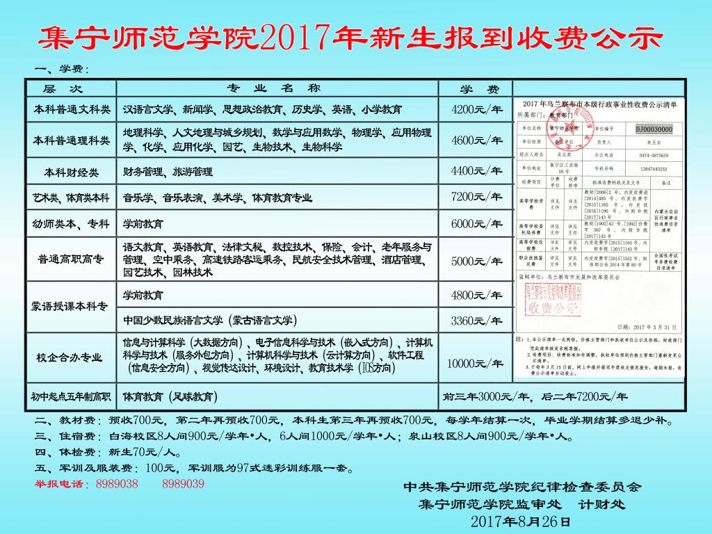 beat365在线唯一官网2017年新生报到收费公示