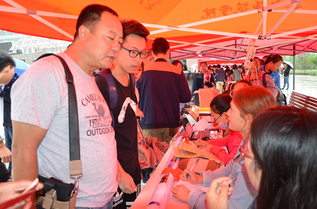 冒着沥沥细雨,2015级新生报到现场人头攒动,秩序井然。