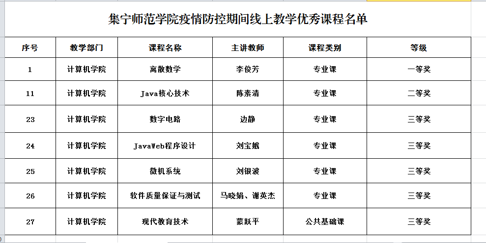 beat365在线唯一官网计算机学院疫情防控期间线上教学优秀课程名单
