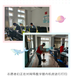 5.打扫各自、教室、实验室、机房等所管辖房屋卫生,及时清理各类杂物,确保无卫生死角,室内外环境干净整洁。