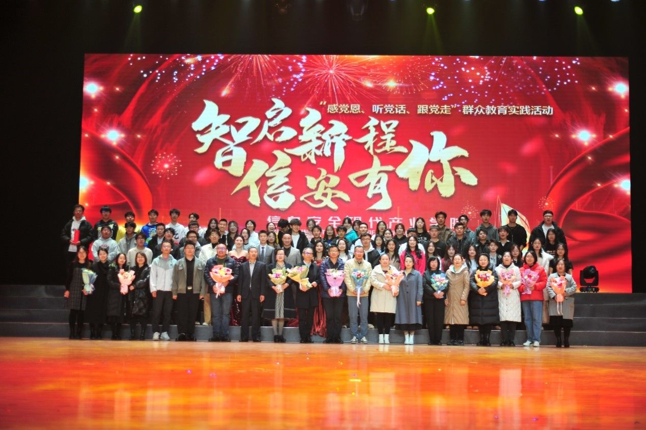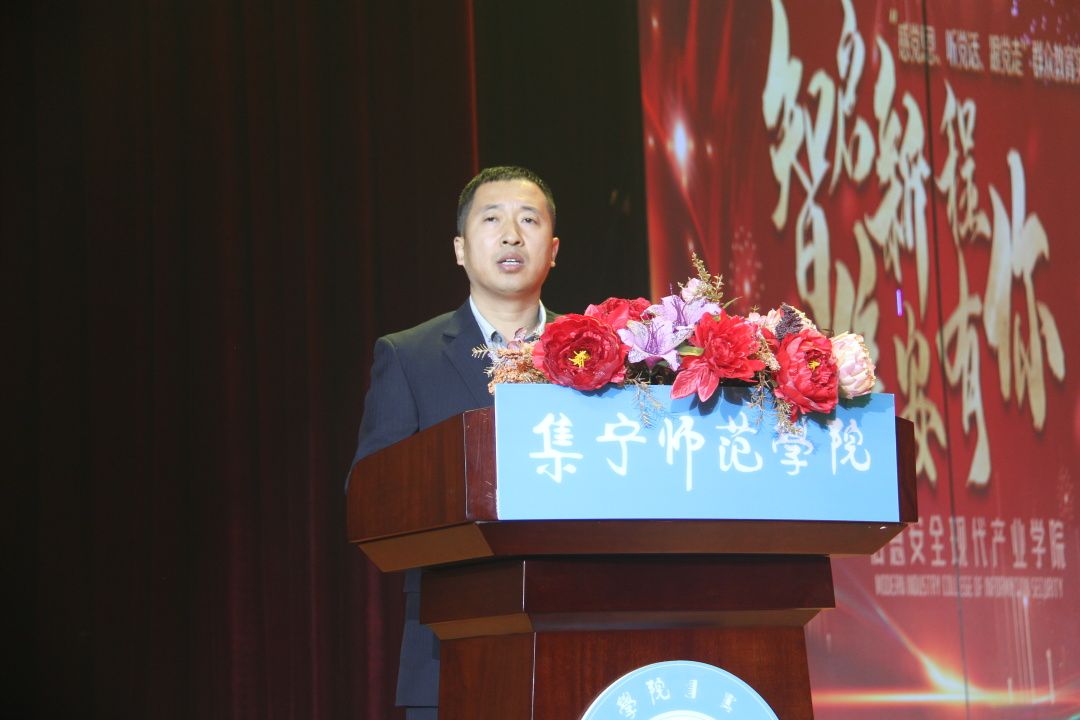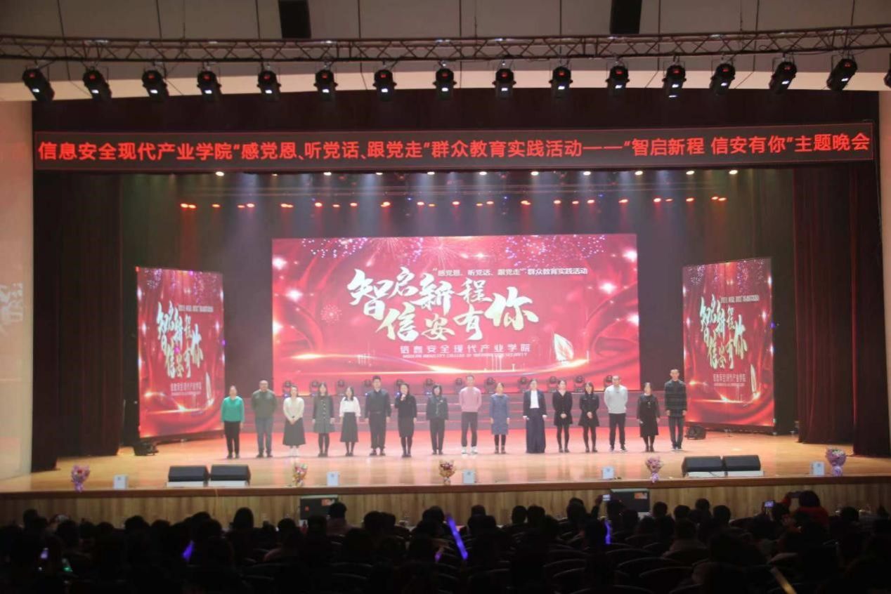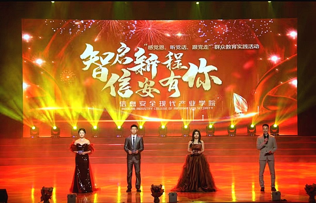 为扎实开展“感党恩、听党话、跟党走”群众教育实践活动,庆祝新中国成立75周年,弘扬爱国主义精神,激励学生以积极向上的态度面对未来学习生活,11月22日晚,beat365在线唯一官网计算机与大数据学院(信息安全现代产业学院)在泉山校区逸夫楼多功能厅成功举办了以“智启新程 信安有你”为主题的晚会。北京中晟华安信息技术有限公司总经理兰助晴、校党政办主任李瑞俊、教务处处长姚玉阁应邀出席晚会。计算机与大数据学院领导班子及全体师生1000余人到场观看。