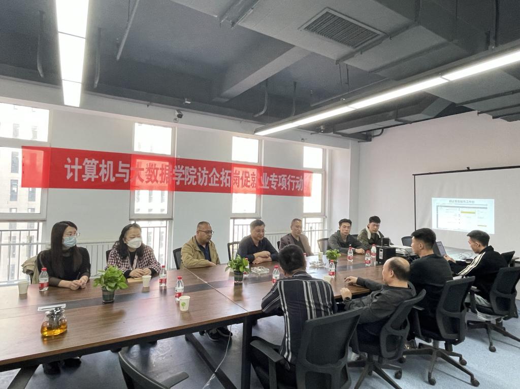 为贯彻党中央、国务院关于高校毕业生就业工作的决策部署,落实“访企拓岗促就业”专项行动,进一步提升学院人才培养质量和学生就业质量,4月18日下午,计算机与大数据学院院长邢德胜带队赴云翼普创有限公司开展“访企拓岗促就业”专项行动,专项组一行实地考察了公司的运营环境并与公司相关负责人进行了座谈。副书记张明东、学工办主任冯荣、就业工作负责人及毕业班班主任代表参加了此次活动。