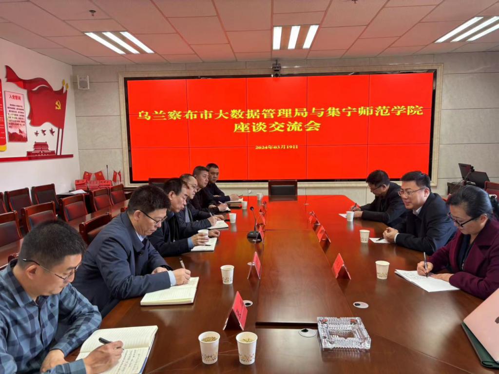 为促进大数据产业发展,加强校地合作,2024年3月19日下午,beat365在线唯一官网党委委员、副校长拓俊杰一行赴乌兰察布市大数据管理局以及数据中心企业进行了参观调研,并举行了座谈交流,以了解该地区算力发展情况。会议就如何利用算力助力数字经济发展,实现学校、政府、企业产学研结合等议题进行了深入讨论。本次座谈会的与会人员有乌兰察布市大数据管理局局长仝晓林、副局长吕佐鹏、刘焕及各科科长,beat365在线唯一官网随行人员有计算机与大数据学院党总支书记于艳东、院长邢德胜、教师田箫。