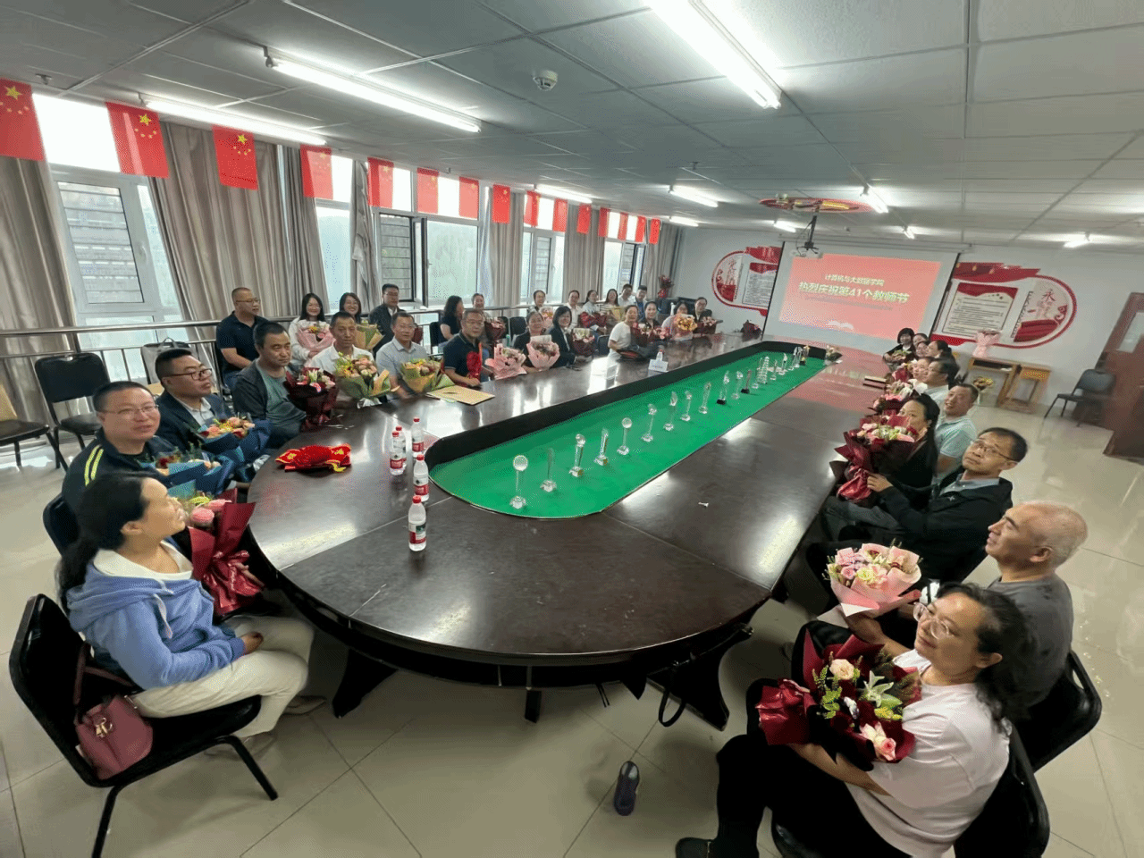 9月10日下午,我院全体教职员工欢聚一堂,共同庆祝属于教育工作者的崇高节日。活动现场洋溢着温馨与感动。桃李情深,师恩难忘。学生代表们为老师送上鲜花,祝愿每一位老师在育人之路上继续绽放光彩,收获满园芬芳。