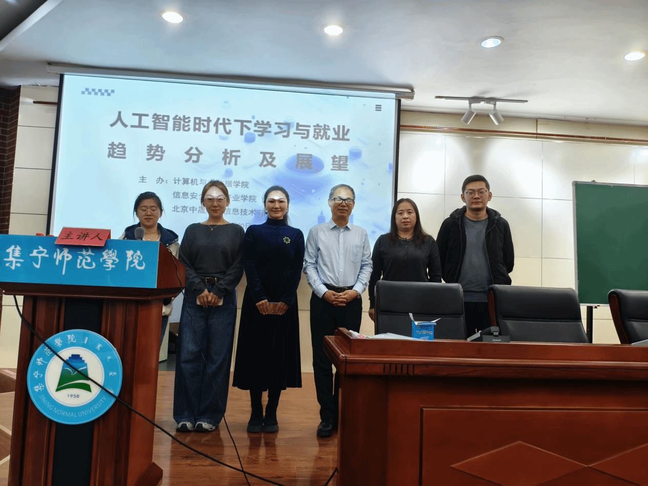 为深入解析人工智能时代的前沿趋势与就业前景,帮助学生把握技术动向、明确核心领域岗位需求、对接校企实训资源,从而科学规划学业、提升就业竞争力,2025年11月20日,计算机与大数据学院、信息安全现代产业学院联合北京中晟华安信息技术有限公司,在泉山校区图书馆报告厅举办了《人工智能时代下学习与就业趋势分析及展望》专题讲座。中晟华安公司兰助晴总经理、就业部姚鑫楠经理,学院领导班子全体成员、软件工程专业各班主任、2023级、2024级、2025级软件工程专业学生共同参与了此次讲座。