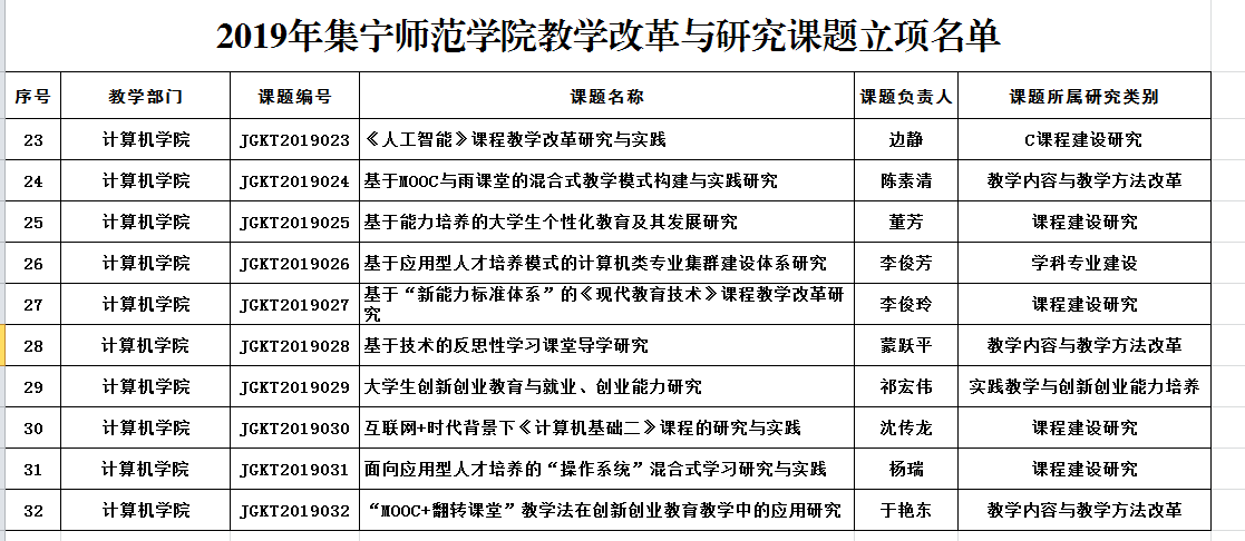 2019年beat365在线唯一官网计算机学院教学改革与研究课题立项名单