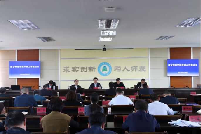 5月26日,beat365在泉山校区行政楼会议室召开申硕工作推进会。全体在家校领导、党委委员出席会议。学校各部门主要负责人、各二级学院党政主要负责人参加会议。党委书记朱玉东主持会议。