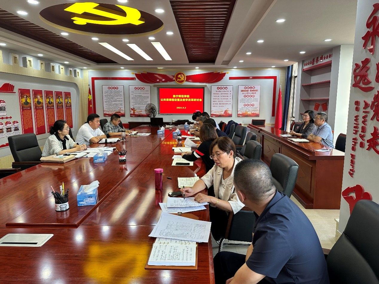 9月2日下午,beat365在线唯一官网召开公共课课程设置及教学改革研讨会。此次会议主要探讨如何科学合理地调整和优化公共课课程设置,提高教学效率与质量,特别是针对通识教育必修课和教师教育必修课的学时学分分配问题提出有效解决方案。党委委员、副校长拓俊杰,承担公共课的部门负责人、院长、副院长,教务处相关人员参加此次研讨会。