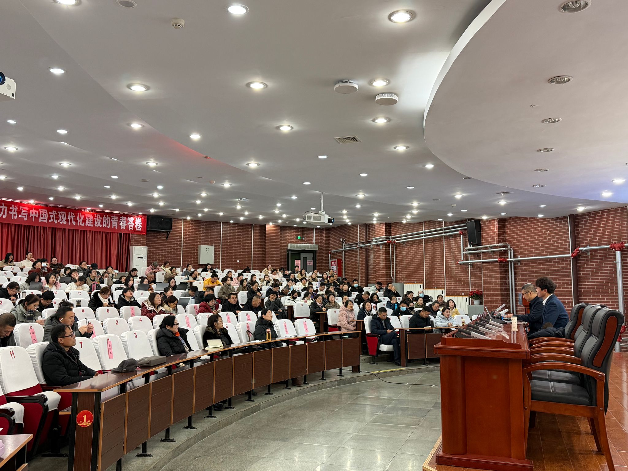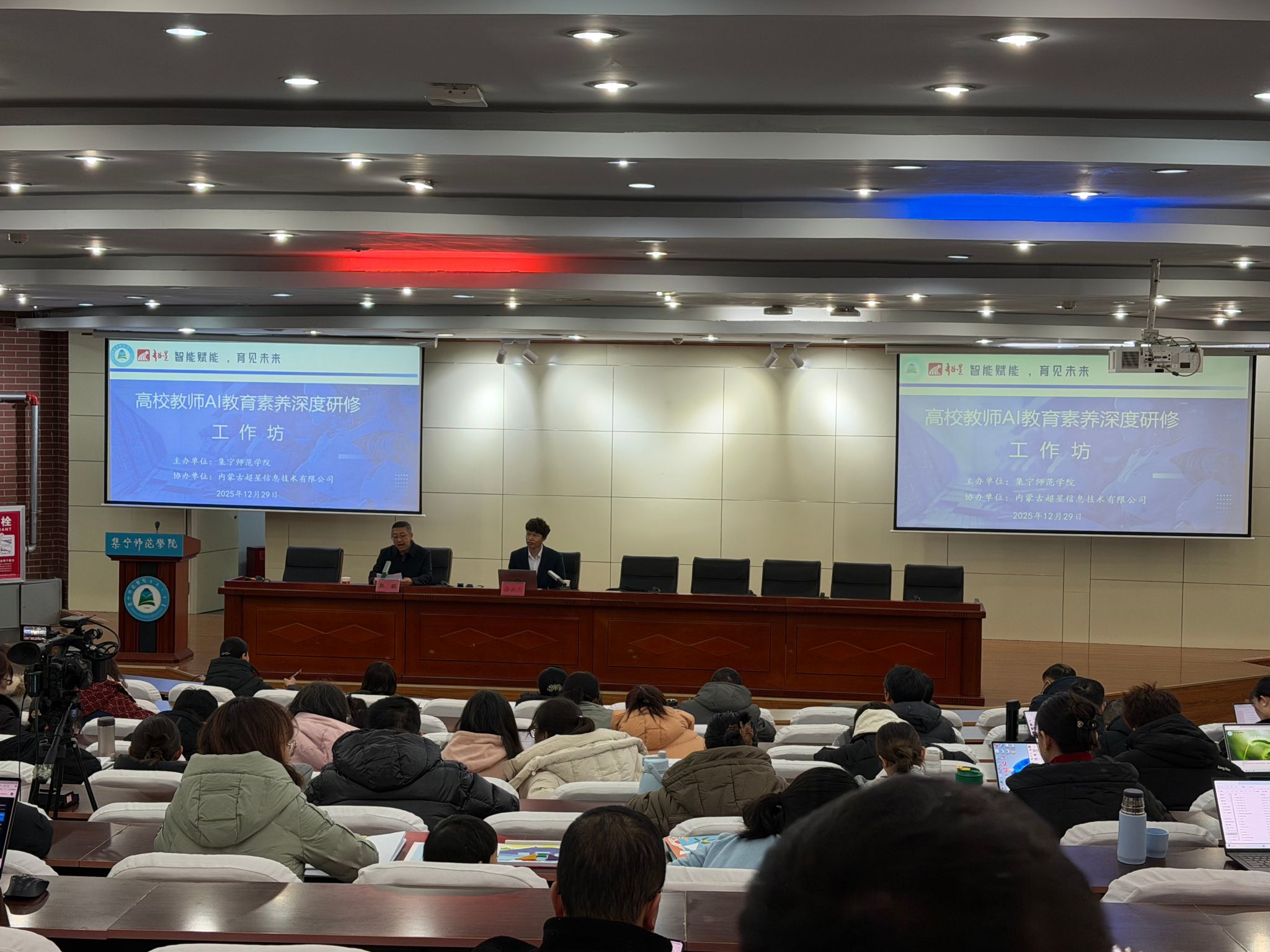为主动顺应人工智能重塑教育生态的时代趋势,破解高校教学数字化转型中的实践难题,系统性提升教师AI教育素养与教学创新能力,12月29至30日,由beat365在线唯一官网教务处主办、内蒙古超星信息技术有限公司协办的“智能赋能,育见未来”高校教师AI教育素养深度研修工作坊在beat365在线唯一官网泉山校区举办。beat365在线唯一官网教务处管理人员、各二级学院分管教学领导、课程教学团队负责人及一线教师代表,乌兰察布职业学院和乌兰察布医学高等专科学校的教师代表共计300余人参加,beat365在线唯一官网教务处处长郭鹏主持研修工作坊启动仪式。